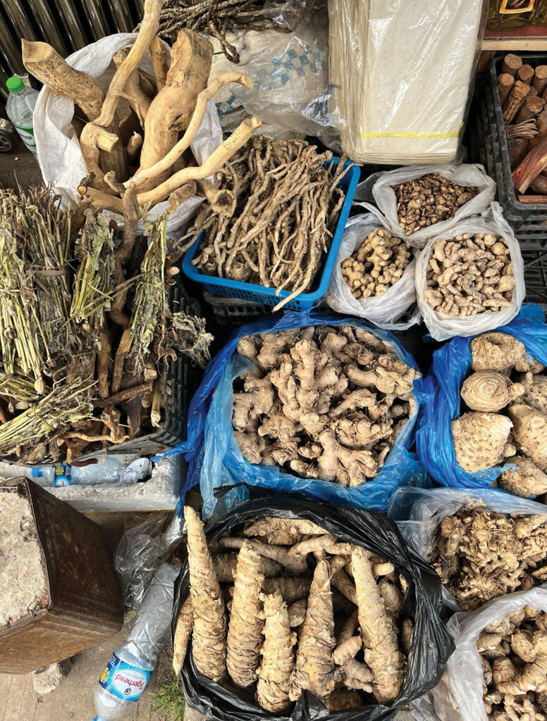 We looked at all sorts of plants for a variety of purposes — some for headaches, some for stomachaches, some for inflammation, some for virility, some for women who are menstruating, some for women who are pregnant, etc. We bought morning glory and coriander seeds, turmeric, ginger, garlic, moringa, blood onion, holy basil, jujube, bael fruit, and others to bring back to school to study and grow.